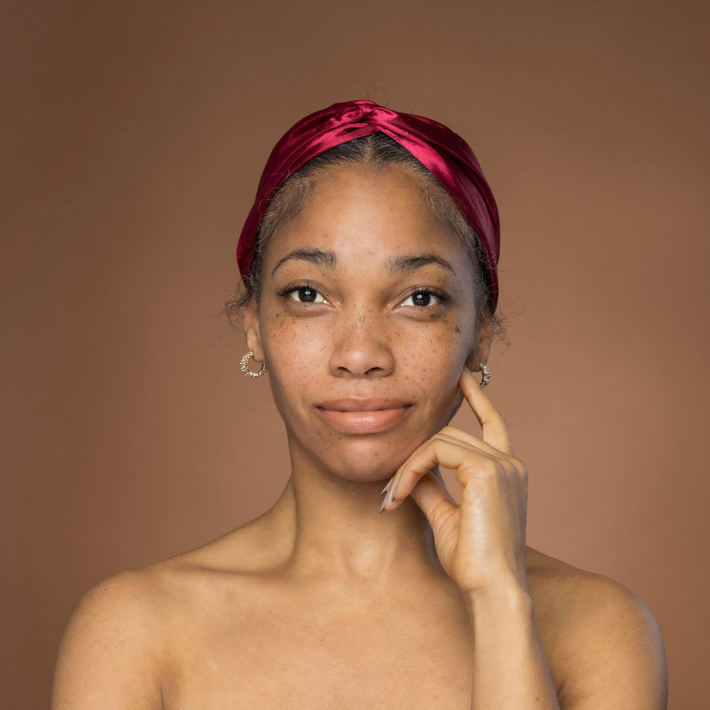 La diadema está disponible en dos tallas para que puedas elegir la que mejor se adapte a ti. La talla más grande también es ideal si prefieres llevar la diadema parcialmente sobre el cabello.