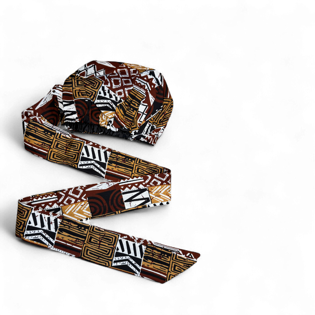 Easy headwrap - Gorro de pelo con forro satinado - Marrón Mosaico Bogolan