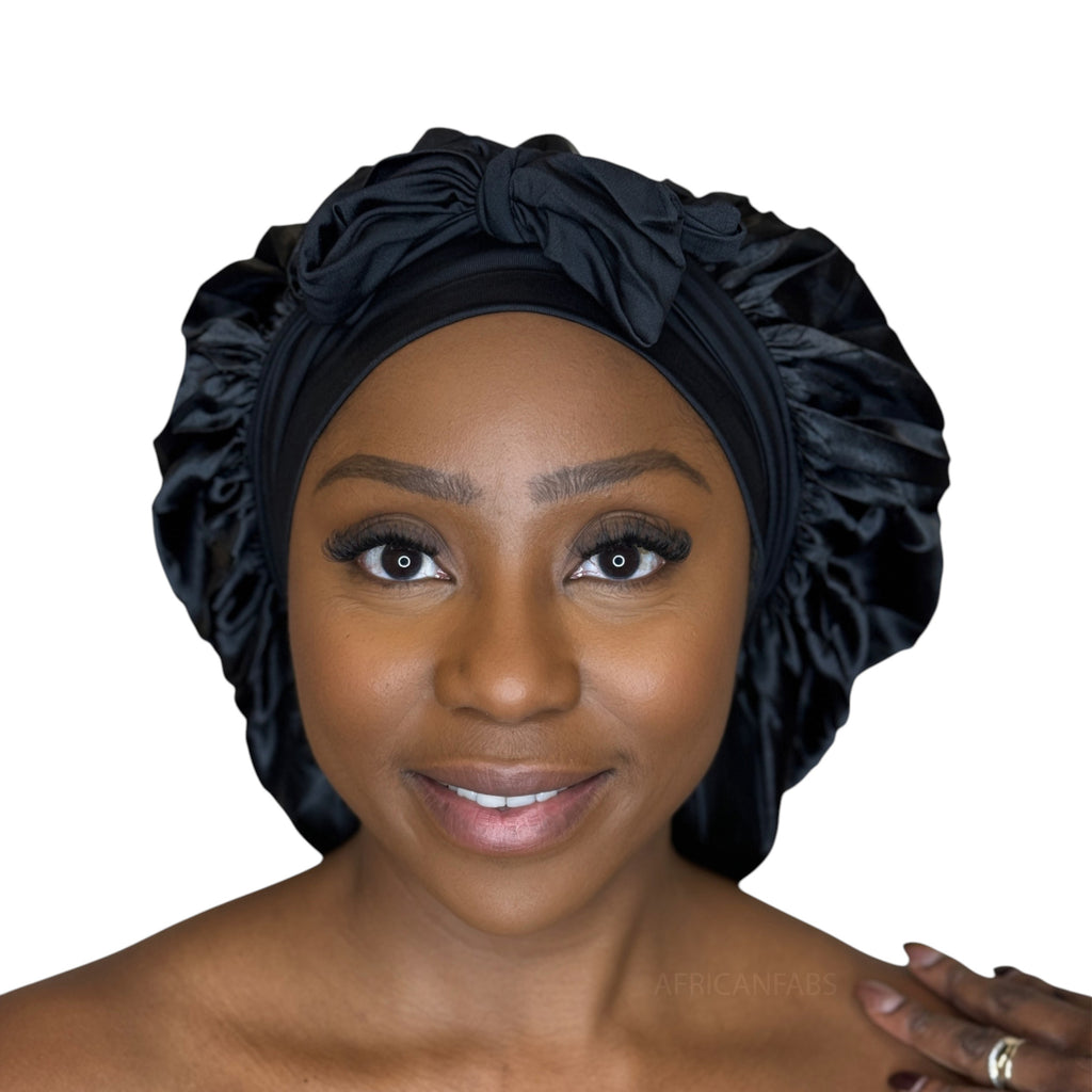 Gorro de satén con correas - Negro ( Gorro de dormir de satén )