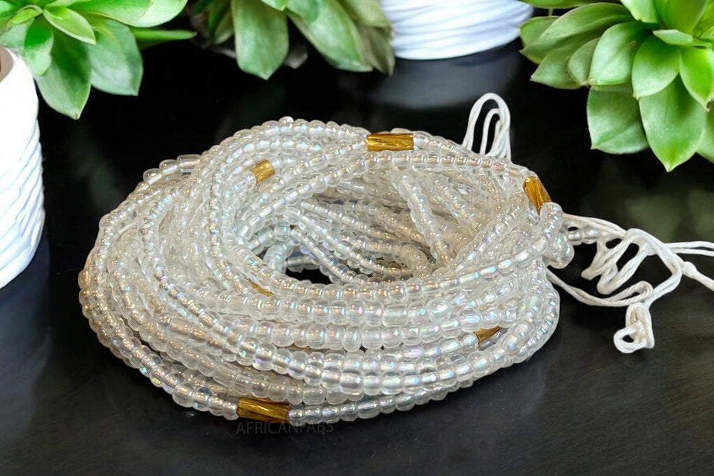 (Importante: por favor lea) Perlas de cintura / Cadena de cadera africana - Blanco (Cordón tradicional no elástico)