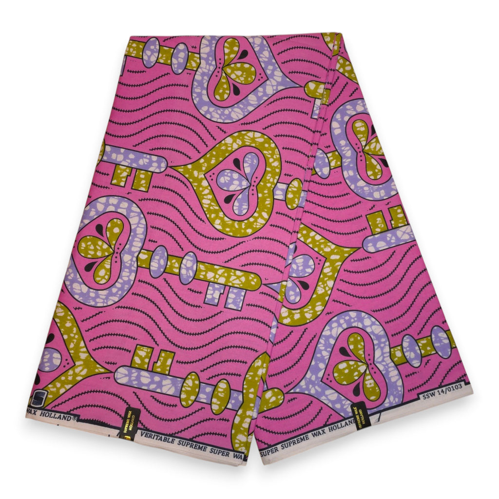 Tela africana Super Wax - Rosa Verde oliva Keys